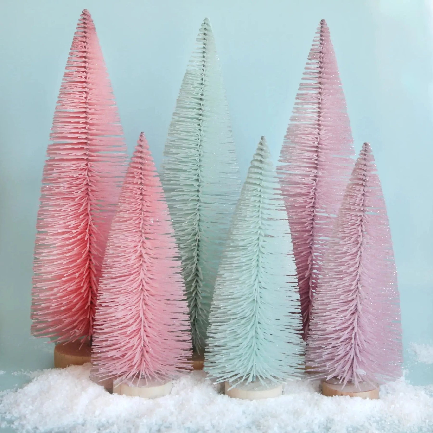 Celebrate the holidays with this eye-catching Bristle Brush Tree in the shade mint! Featuring vibrant colors, a wood stand, subtle sparkles, and all the holiday spirit. Available in two sizes, add this fun decor to any corner of your home for the perfect pop of cheer! Dimensions | 9". Color | Mint.